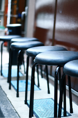 a piece of furniture for sitting, but with no support for a person's back (like a chair has instead)
